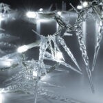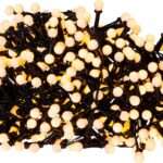 Karacsonyi dekoracio › Xmas LED-es gömb ffényfüzér, 8m/100db melegfehér LED, állófényű, zöld vezeték, hálózati adapter, beltéri kivitel